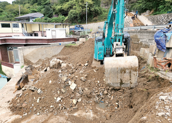 하동군이 서해량 언덕에 무너진 주택을 재해위험시설로 고시하고 부지를 매입했다. 그리고 그 부분 에 군 예산을 투입해 재해방지시 설을 시공 중이다. (관련 기사 본 지 31호 2025년 9월 16일 자 발 행- 5면)