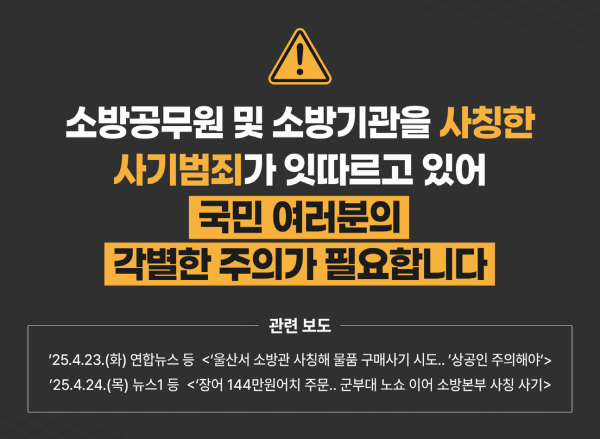 경로에는 절대 응하지 말고 반드시 해당 소방서에 직접 확인할 것을 바란다”고 당부했다.