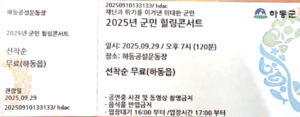 일부 군민들은 ‘티켓이 없으면 관람 자체가 불가능한 거냐’는 질문도 이 어졌다. 왜 티켓 발행 비용을 들여 가면서, 즉 예산을 낭비해 가면서 이렇게 군민을 불안하게, 불편하게 하는지 이해가 가지 않는다.