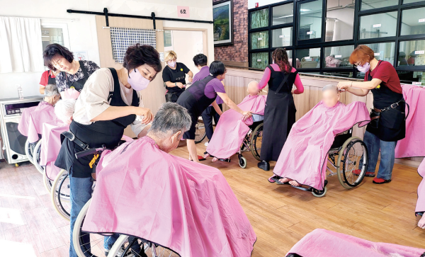 미용협회 회원 10명 내외가 월1~2회 시설을 방문하여 머리를 다 듬고, 어르신들의 말벗이 되어 드 리며 청결 유지와 심리적 안정감 향상에 이바지하고 있다.