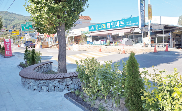 횡천면 소재지 도로변에 돌망태기 화단을 만들고 나무를 심어… “통행, 주차 방해”