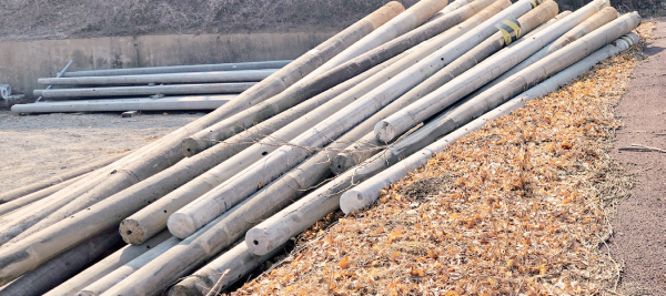 적량 농공단지 옆 공터 폐전주 다량 방치 … 한전이 왜 이러나?