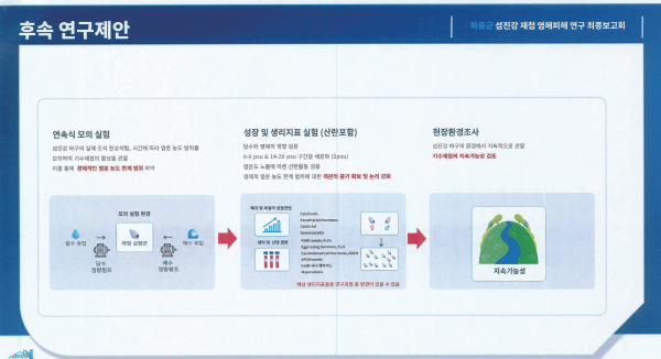 재첩 어민들은 실증연구를 더 확대해서 연구 지점을 당 초 2곳에서 4~5곳으로 늘리고, 자료의 신뢰성을 높일 수 있도록 인위적으로 염분환경을 조성해서 실시한 실 험실 내 연구 이외에 현지 실증실험을 통한 자료를 도 출해 줄 것을 요청했다.