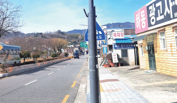 이 교통시설물을 설치하고 관리하는 하동군은 도대체 군민을 어떻게 보 고 이러고 있는지 질문을 던지지 않 을 수 없다. 이 거리는 공무원들은 물론 하승철 군수도 자주 다니는 구간 이다.