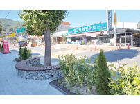 횡천면 소재지 도로변에 돌망태기 화단을 만들고 나무를 심어… “통행, 주차 방해”