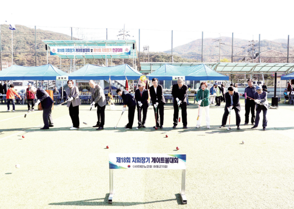 하동군은 지난 10일 하동군공설 운동장에서 (사)대한노인회 하동 군지회(지회장 노영태) 주관 ‘제 18회 지회장기 게이트볼 및 제10 회 지회장기 한궁대회’가 성황리 에 개최됐다고 밝혔다.