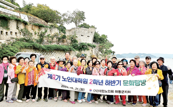한편 이번 활동에 앞서 지난 2일 에는 하동군 노인대학생들이 순 천만 일대로 문화탐방을 다녀왔 다. 이날 참여 학생들은 “배움과 여가가 함께한 뜻깊은 시간이었 다”라는 소감을 밝힌 바 있다. 하동군 노인대학·대학원은 오는 11월까지 △건강 △시사 △교양