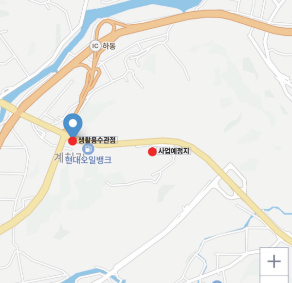 주민들 “사업지에서 불과 400여m 거리에 계천시장 용수원, 오염 우려