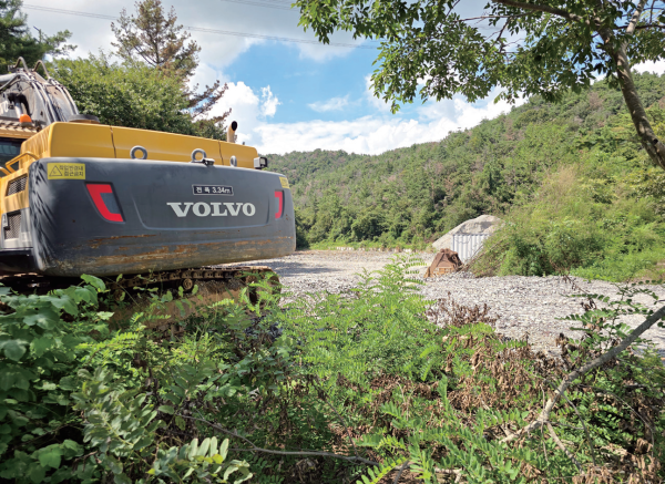 본지 기자가 9월 초 현장을 찾았더 니 야적했던 골재 대부분을 싣고 나간 것으로 확인됐다. 하지만 아직도 바닥에 상당량이 그대로 방치되고 있었다.