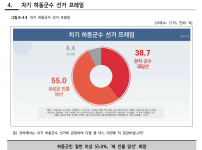 여론조사에서 55% “하동군수 새 인물 당선 희망” … 군수 선거 새국면국민의힘 후보별 지지도 하승철 37.3%, 김현수 31.3%, 김선규 6.5%, 송원우 4.2 %, 하만진 4.1 % 하동저널이 리얼미터에 의뢰해 지난 21일과 22일 이틀간 하동군민 18…