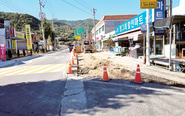 겉으로 보기에는 흠잡을 때 없어 보인다. 종전보다 길거리가 훨씬 훤해졌다. 길거리에 화단이 조성되고 꽃도 심었으니 환경도 좋아졌다. 하지만 이런 화단 설치를 누가 원해서 만들었느냐는 질문이 쏟아지고 있다. 화단이 설치되기 전에는 인근 식당과 마트 등을 이용하는 군민들이 그냥 차량을 주차하고 잠시 밥을 먹고 물건을 사 갈 수 있었다.