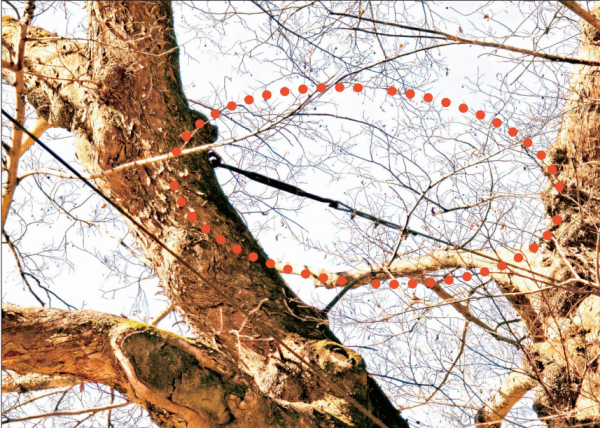자연유산으로 지정될 만큼 유서 깊 은 이 나무에 굵은 쇠못을 밖에서 철사줄로 당겨서 맨다는 것이 과연 이 나무를 쓰러지지 않게 잡아줄 유 일한 방법이었을까 하는 질문이 던 져진다.