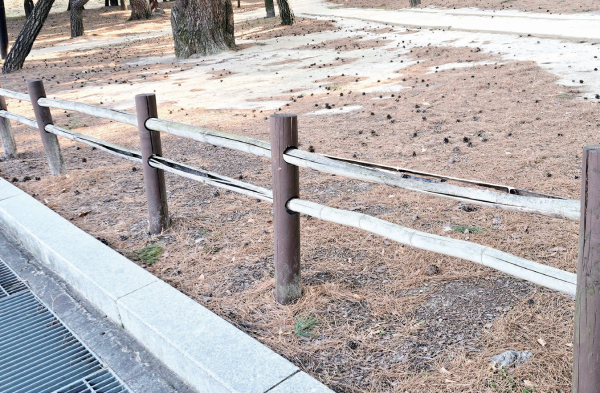 송림공원에 많은 예산 들여 정비하더니, 울타리는 왜 저렇게 썩어 있는가?