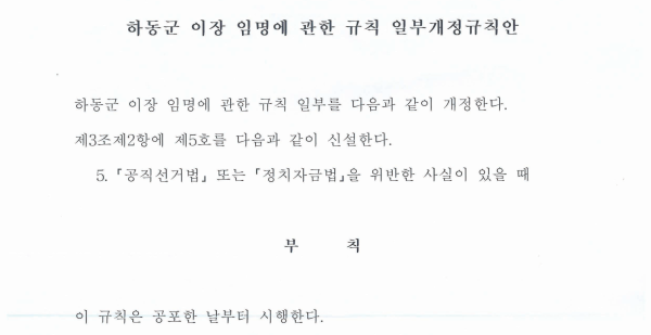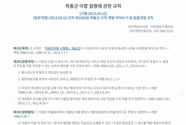 이와는 별도로 이번 사건을 계기로 하동군이 ‘하동군 의 이장 임명에 관한 규칙’ 재정비에 나서 눈길을 끌 고 있다.