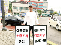 길거리 홍보전에 나선 언론인 … ‘하승철을 소환조사하라’, ‘편파적인 경찰서장 물러가라’ 피케팅 시위